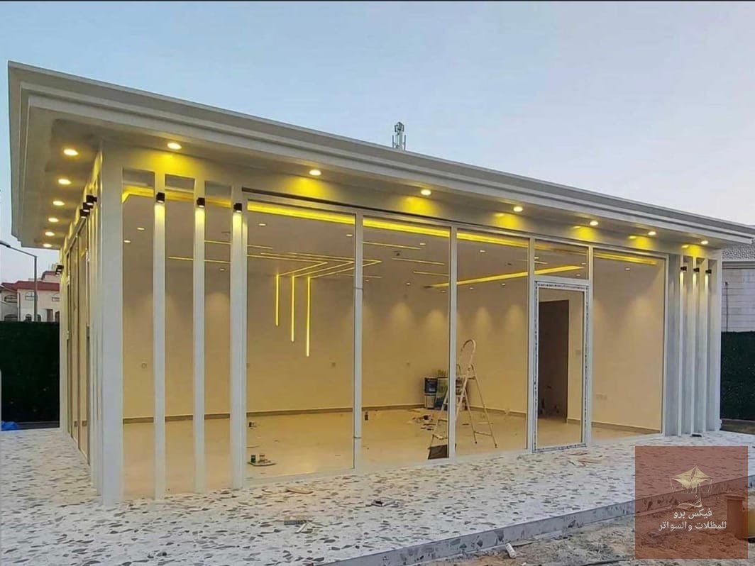 - سرعة التنفيذ (الجاهزية): المجالس الجاهزة توفر عناء البناء التقليدي والترميم الطويل؛ حيث يتم تركيب الهياكل المعدنية والزجاج في وقت قياسي.