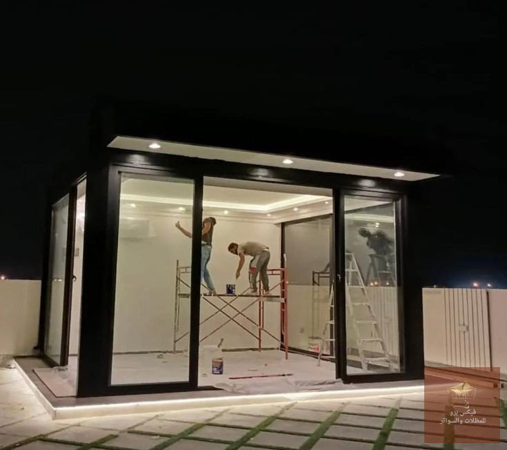 - سرعة التنفيذ (الجاهزية): المجالس الجاهزة توفر عناء البناء التقليدي والترميم الطويل؛ حيث يتم تركيب الهياكل المعدنية والزجاج في وقت قياسي.
